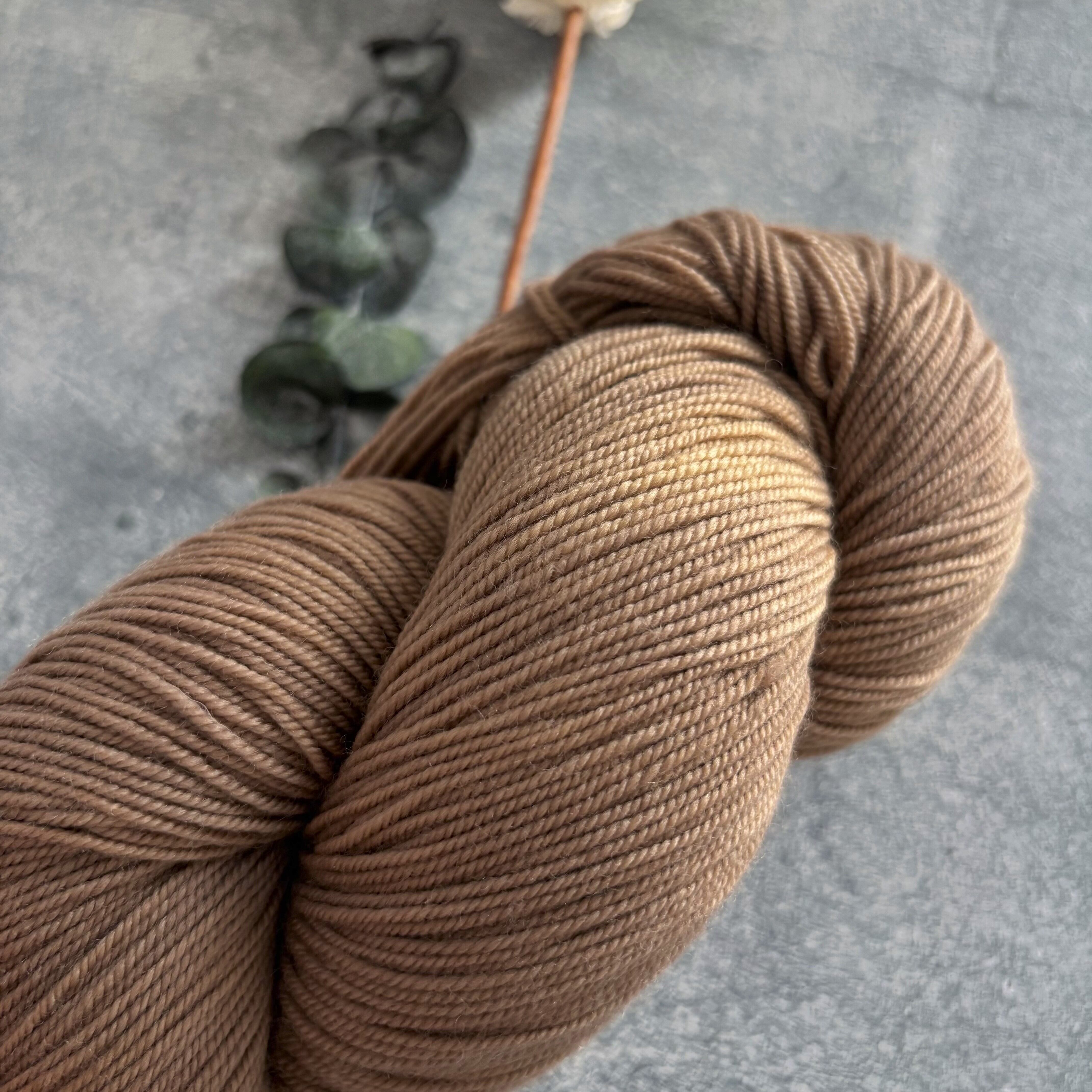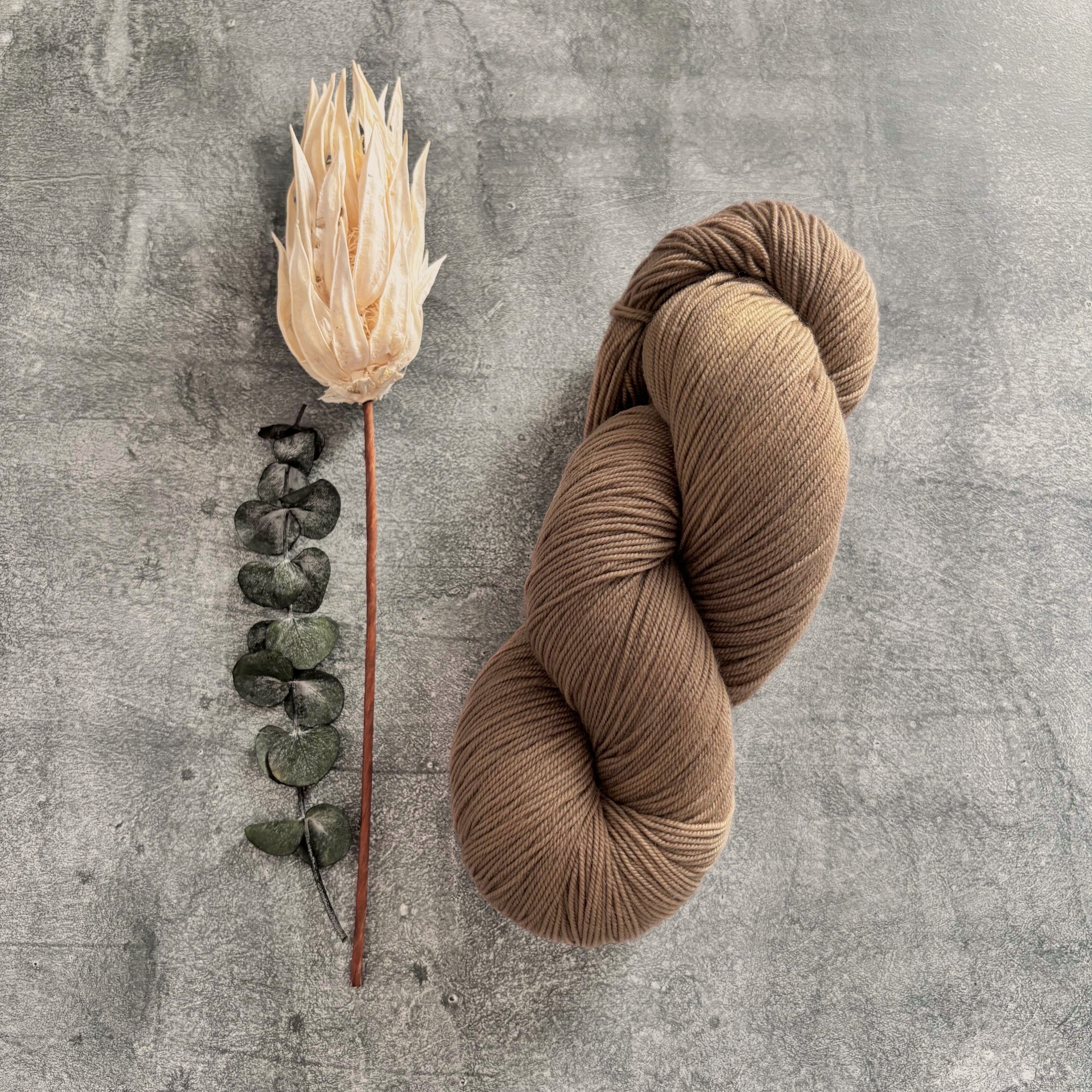 ブラウンの濃淡ゆらぎが楽しめる毛糸(イエローブラウン~レッドブラウン色系)(草木染め)